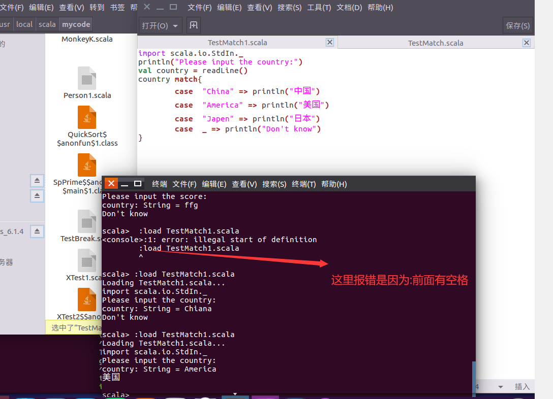 //代码文件为/usr/local/scala/mycode/TestMatch1.scala