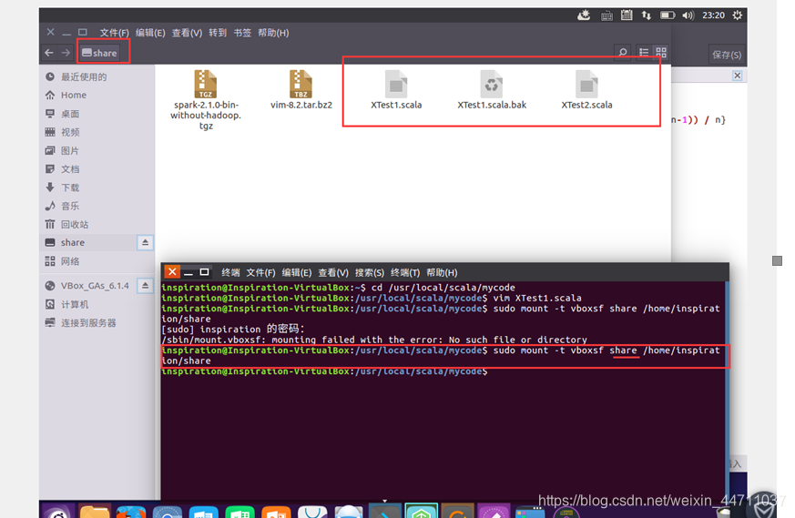 - 在Windows中使用VirtualBox安装Ubuntu,安装好scala后,使用scala解释器,