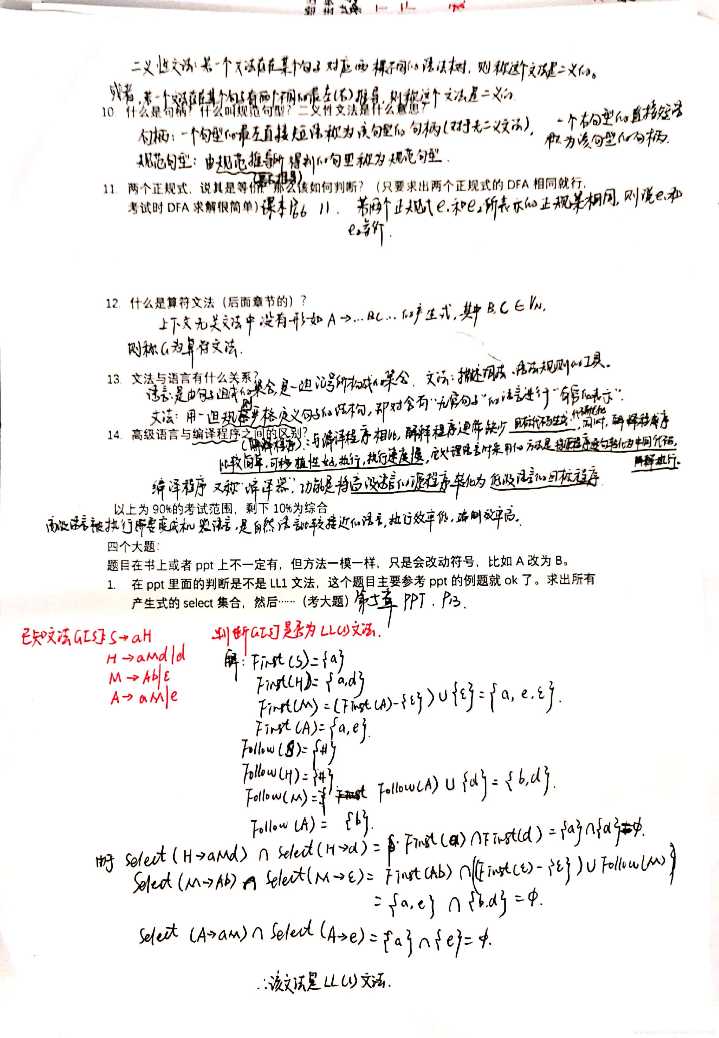 - 在ppt里面的判断是不是LL1文法,这个题目主要参考ppt的例题就ok了。求出所有产生式的select集合,然后……(考大题)