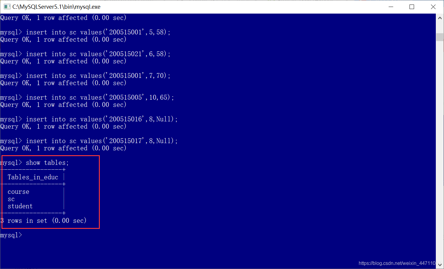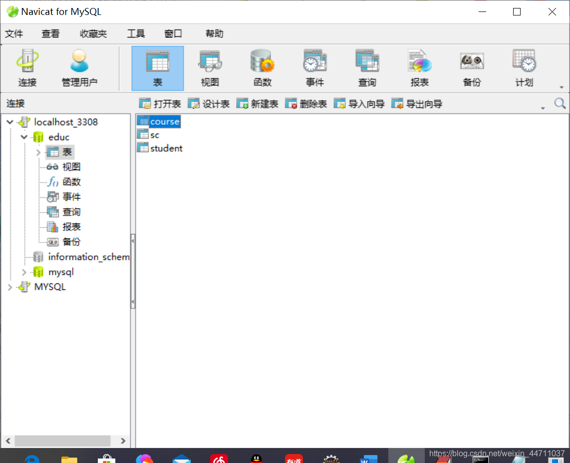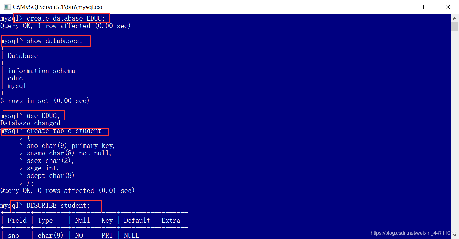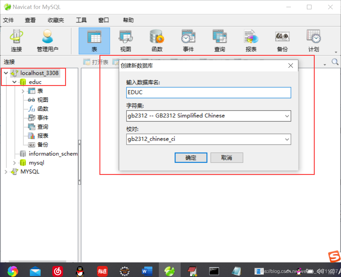 如果在mysql里输入语句创建数据库 ,则会显示已存在数据库EDUC。我是在mysql里创建的。