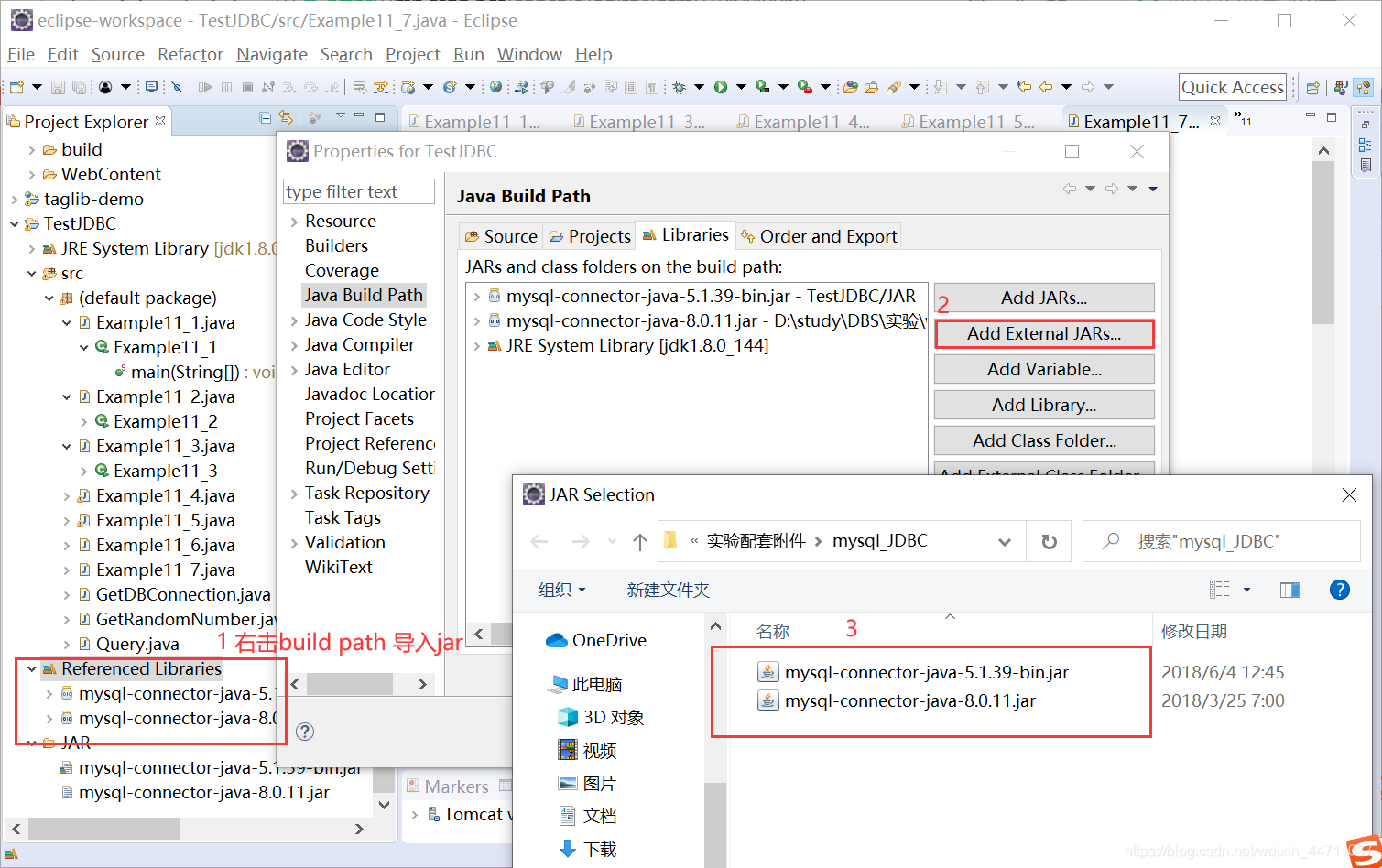 教材下载的是mysql-connector-java-5.1.40.zip,将该zip文件解压至硬盘, 在解压后的目录下的mysql-connector-java-5.1.40-bin.jar文件就是连接 MySQL数据库的JDBC-数据库驱动。将该驱动复制到JDK的扩展目录中, 比如:E:\jdk1.8\jre\lib\ext。