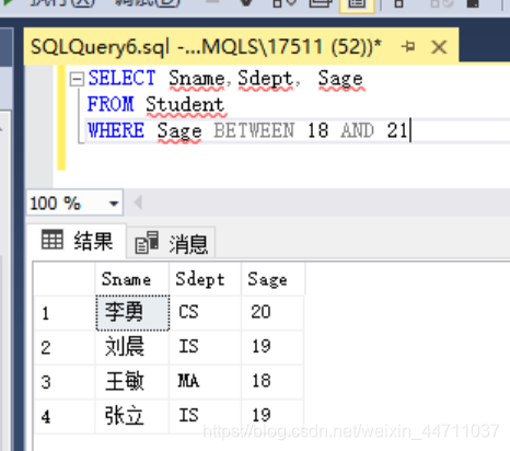 2.查询年龄在18~21岁(包括18岁和21岁)之间的男生的姓名、系别和年龄。