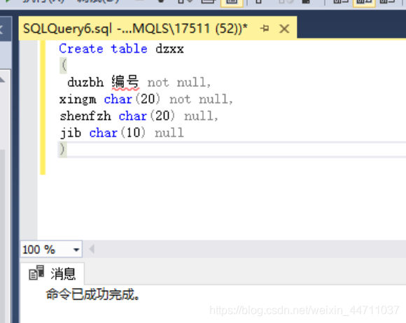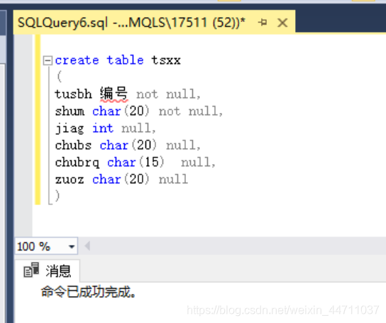 2. 建立一个“课程”表Course。可使用SQL语句直接执行,也可使用SSMS图形界面操作完成创建表。