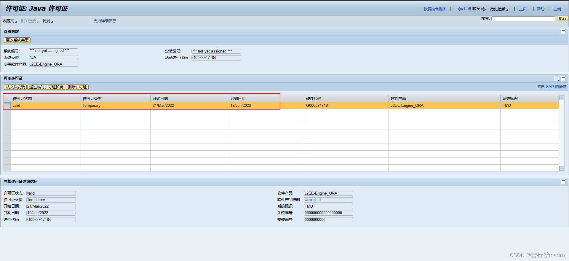 刚安装完时的临时许可。