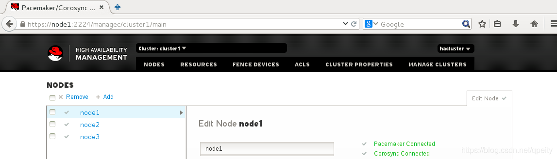 node3: Authorized在server上:打开firefox,访问https://node1:2224,用hacluster/redhat登录。